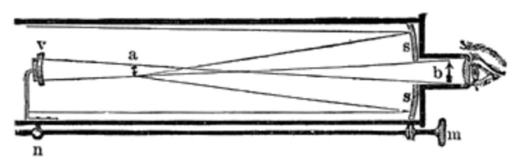 Keywords: Meyers b6 s0151 b3.png de Gregorys Spiegelteleskop Meyers b6 s0151 jpg ca 1885 author PD-Meyers Images from Meyers Konversationslexikon 4th edition - text figures Reflecting telescope diagrams