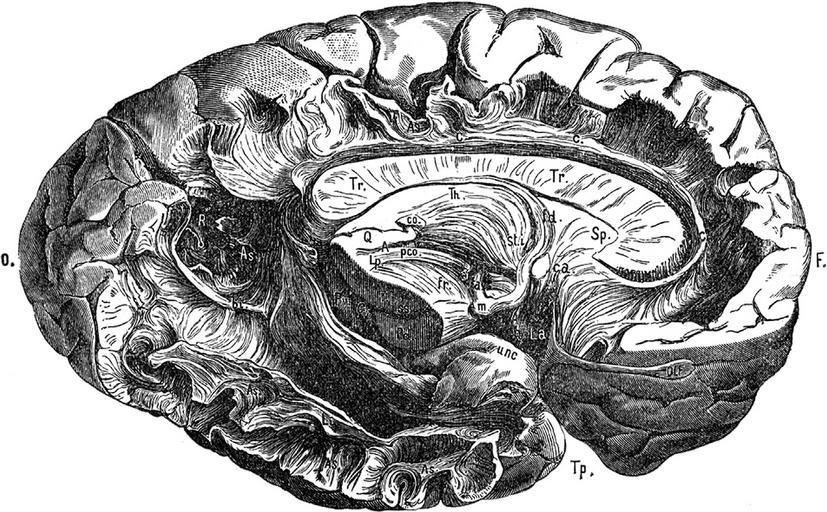 Keywords: Meynert1885.PNG en Fibers in his gross dissection of the medial surface the human brain Meynert T 1885 Psychiatry A Clinical Treatise on Diseases of the Forebrain Based Upon a Study of its Structure Functions and Nutrition Part 1 The Anatomy Physiology and Chemistry of the Brain Translated by B Sachs New York G P Putnams ™ Sons reprinted in Neurosciences Vol 15 No 4 July 2006 pp 1 “62 Cerebral White Matter ” Historical Evolution of Facts and Notions Concerning the Organization of the Fiber Pathways of the Brain Journal of the History of the Neurosciences 16 237 “267 2007 Theodor Meynert 1885 PD due to age PD-old Theodor Meynert Neuroanatomy Human brain sagittal section White matter Cingulum brain Corpus callosum Prosencephalon |