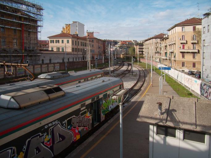 Keywords: Mi Porta Genova vista nord.JPG it Vista panoramica della stazione di Milano Porta Genova verso nord own Friedrichstrasse 2009-03-25 45 27 13 63 N 9 10 11 125 E source exif_heading Milano Porta Genova train station Graffiti on rolling stock of Italy |