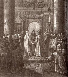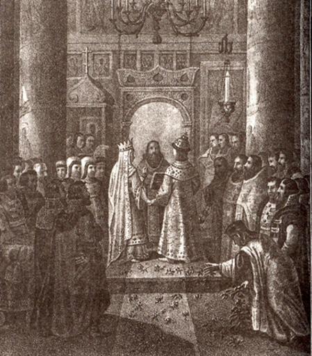 | Keywords: Michael I's wedding by B.Chorikov.jpg  Чо иков Б Венчание ца я  ихаила Федо овича с Евдокией Лукьяновой из  ода Ст ешнёвых http //history sgu ru/ wid 1904 century 1800 Chorikov B PD-old Eudokia Streshneva Royal wedding celebrations in Russia Files uploaded by Shakko from various sources Boris Chorikov Michael I of Russia in engravings |