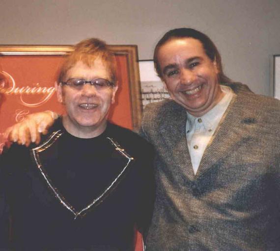 Michael Laucke With Elton John, during a red carpet event for AIDS. One Million dollars was collected in a spectacular event where Sharon Stone was the guest of honor. the mayor of San Francisco was host for the evening .