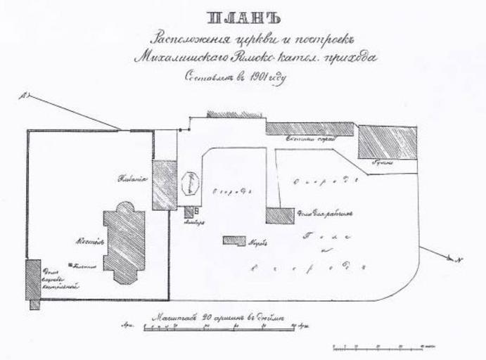 | Keywords: Michališki, Śviranskaja. Міхалішкі, Сьвіранская (1901).jpg іхалішкі Michališki вуліца Сьві анская vulica Śviranskaja Касьцёл Сьвятога іхала А ханёла і кляшта аўгустынаў Сытуацыйны плян Kałamajska-Saeed M Kościoły i klasztory rzymskokatolickie dawnego województwa wileńskiego Tom 1 Kraków MCK 2005 http //globus tut by/ www globus tut by author 1901 PD-old-100 History of Michališki Church of Saint Michael the Archangel in Michališki Floor plans of Belarus | ||||