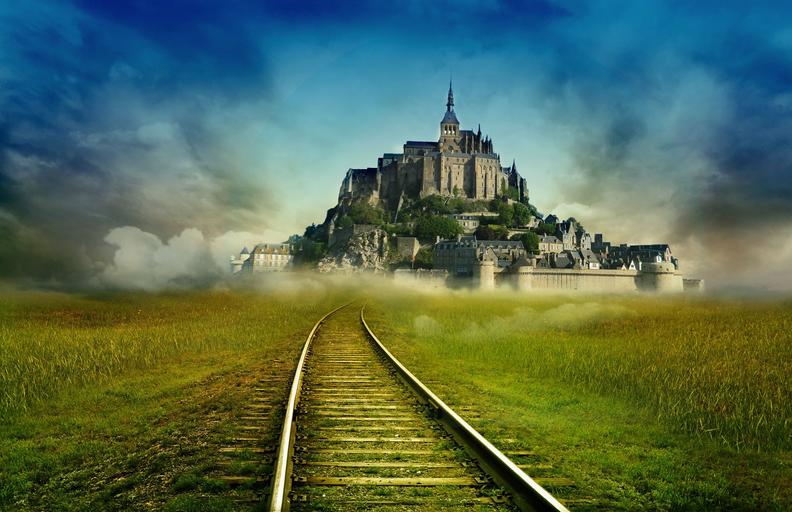 Keywords: michel brittany monastery france castle road train landscape storm clouds fantasy