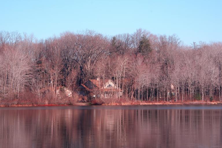 Keywords: michigan lake house lake winter reflection tranquil outdoors house wood cottage cold landscape cabin chalet hut forest nature