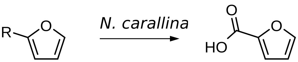 | Keywords: Microbial oxidation to produce 2-furoic acid.svg en Diagram showing the microbial oxidation of 2-furfuryl alcohol R CH<sub>2</sub>OH or 2-furfural R CHO to 2-furoic acid by Nocardia corallina Own 20 11 7 October 2016 UTC Ed Edgar181 Organic oxidations Furfuryl alcohol Furfural |