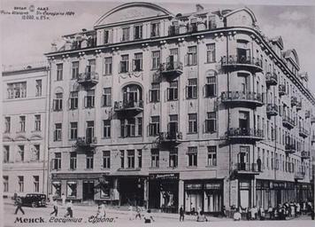 | Keywords: Miensk, Eŭropa. Менск, Эўропа (1934).jpg   енск Miensk гатэль Эў опа Eŭropa і пачатак вуліцы Ф анцішканскай TUT by author between 1934 1938 PD-old-70 Minsk in the 20th century Internacyjanaĺnaja Street Minsk Hotel Europe Minsk Lienina Street Minsk |