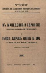 | Keywords: Mihail Gerdzhikov's and Hristo Tatarchev's Memoirs 2.jpg en Mihail Gerdzhikov's and Hristo Tatarchev's Memoirs 1928 scanned Lyubomir Miletich other versions Custom license marker 2015 11 05 PD-old 1928 books Books in Bulgarian Books from Bulgaria IMARO Mihail Gerdzhikov Hristo Tatarchev Lyubomir Miletich |