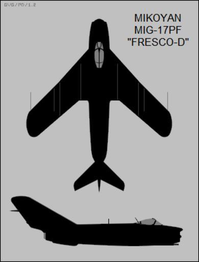 | Keywords: Mikoyan-Gurevich MiG-17PF two-view silhouette.png en 2-view silhouettes of the Mikoyan-Gurevich MiG-17PF http //www vectorsite net/Avmig15_2_04 png greg goebel 2011-01-18 VectorSite images by Greg Goebel are In The Public Domain Greg Goebel MiG-17 drawings Images by Greg Goebel |