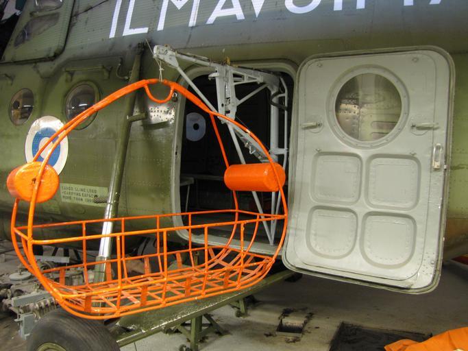 | Keywords: Mil Mi-4 HR-3 rescue basket.JPG  en Rescue basket of Mil Mi-4 helicopter in Finnish Aviation Museum Registry HR-3 used by Finnish Air Force between 1962-1979 Serial number 009114 fi Mil Mi-4 helikopterin pelastuskori Suomen ilmailumuseossa Tunnus HR-3 ollut ilmavoimien käytössä vuosina 1962-1979 Sarjanumero 009114 Mil Mi-4 HR-3 Finnish Air Force Static museum display Photograph 2010-11-13 MKFI own 60 18 13 78 N 24 57 40 57 E region FI Mil Mi-4 in the Finnish Air Force Mil Mi-4 museum aircraft Rescue baskets Finnish Aviation Museum Taken with Canon PowerShot SX10 IS Files by User MKFI |