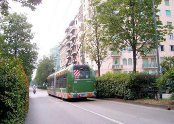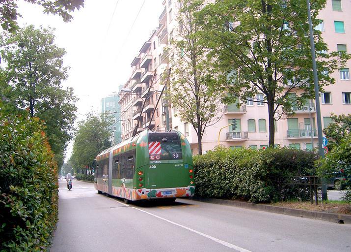 Keywords: Milano-Cristalis2.jpg A rear view of the Milan Italy Cristalis trolleybus seen in image Milano-Cristalis1 jpg It is operating on a priority carriageway dedicated to emergency vehicles buses taxis and cycles Ordinary traffic uses the carriageways on either side of the hedges Own 2007-06 Spsmiler ATM 400 Hedges in Italy z 2007 in trolleybus transport in Milan June 2007 in Milan Milan trolleybus line 90 |