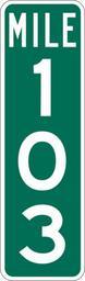 | Keywords: Mile Marker 103.svg PD MUTCD Rfc1394 457 1676 18 60 triple digit mile marker D10-3 Made using Viridian SVG Batcher this file was fabricated by a program 2009-03-05 Paul Robinson Rfc1394 Own work all rights released Public domain D10-3 - Distance Signs-3 Digit |