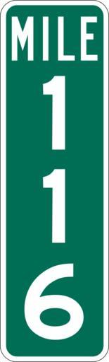 | Keywords: Mile Marker 116.svg PD MUTCD Rfc1394 457 1676 18 60 triple digit mile marker D10-3 Made using Viridian SVG Batcher this file was fabricated by a program 2009-03-05 Paul Robinson Rfc1394 Own work all rights released Public domain D10-3 - Distance Signs-3 Digit |