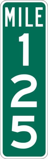 Keywords: Mile Marker 125.svg PD MUTCD Rfc1394 457 1676 18 60 triple digit mile marker D10-3 Made using Viridian SVG Batcher this file was fabricated by a program 2009-03-05 Paul Robinson Rfc1394 Own work all rights released Public domain D10-3 - Distance Signs-3 Digit |