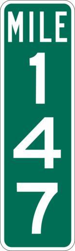 Keywords: Mile Marker 147.svg PD MUTCD Rfc1394 457 1676 18 60 triple digit mile marker D10-3 Made using Viridian SVG Batcher this file was fabricated by a program 2009-03-05 Paul Robinson Rfc1394 Own work all rights released Public domain D10-3 - Distance Signs-3 Digit |