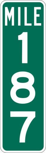 Keywords: Mile Marker 187.svg PD MUTCD Rfc1394 457 1676 18 60 triple digit mile marker D10-3 Made using Viridian SVG Batcher this file was fabricated by a program 2009-03-05 Paul Robinson Rfc1394 Own work all rights released Public domain D10-3 - Distance Signs-3 Digit |