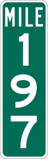 | Keywords: Mile Marker 197.svg  PD MUTCD Rfc1394 457 1676 18 60 triple digit mile marker D10-3 Made using Viridian SVG Batcher this file was fabricated by a program 2009-03-05 Paul Robinson Rfc1394 Own work all rights released Public domain D10-3 - Distance Signs-3 Digit |