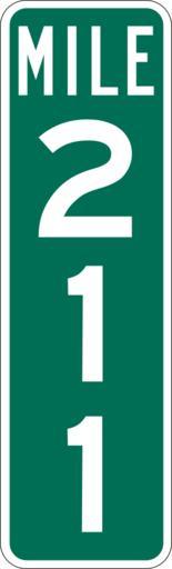 | Keywords: Mile Marker 211.svg PD MUTCD Rfc1394 457 1676 18 60 triple digit mile marker D10-3 Made using Viridian SVG Batcher this file was fabricated by a program 2009-03-05 Paul Robinson Rfc1394 Own work all rights released Public domain D10-3 - Distance Signs-3 Digit 211 number |