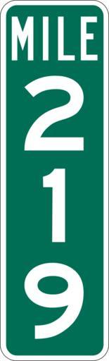 Keywords: Mile Marker 219.svg PD MUTCD Rfc1394 457 1676 18 60 triple digit mile marker D10-3 Made using Viridian SVG Batcher this file was fabricated by a program 2009-03-05 Paul Robinson Rfc1394 Own work all rights released Public domain D10-3 - Distance Signs-3 Digit |