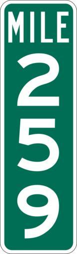 | Keywords: Mile Marker 259.svg PD MUTCD Rfc1394 457 1676 18 60 triple digit mile marker D10-3 Made using Viridian SVG Batcher this file was fabricated by a program 2009-03-05 Paul Robinson Rfc1394 Own work all rights released Public domain D10-3 - Distance Signs-3 Digit |