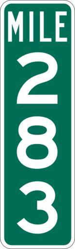 | Keywords: Mile Marker 283.svg  PD MUTCD Rfc1394 457 1676 18 60 triple digit mile marker D10-3 Made using Viridian SVG Batcher this file was fabricated by a program 2009-03-05 Paul Robinson Rfc1394 Own work all rights released Public domain D10-3 - Distance Signs-3 Digit |