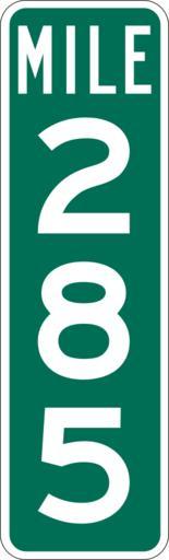 | Keywords: Mile Marker 285.svg PD MUTCD Rfc1394 457 1676 18 60 triple digit mile marker D10-3 Made using Viridian SVG Batcher this file was fabricated by a program 2009-03-05 Paul Robinson Rfc1394 Own work all rights released Public domain D10-3 - Distance Signs-3 Digit |