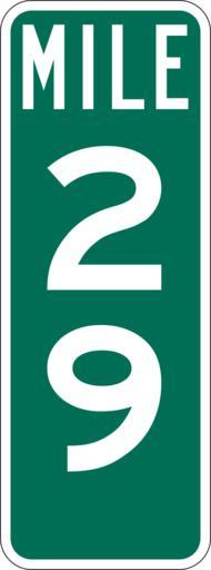 Keywords: Mile Marker 29.svg PD MUTCD Rfc1394 457 1676 18 60 double digit mile marker D10-2 Made using Viridian SVG Batcher this file was fabricated by a program 2009-03-05 Paul Robinson Rfc1394 Own work all rights released Public domain D10-2 - Distance Signs-2 Digit |