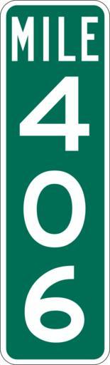 Keywords: Mile Marker 406.svg PD MUTCD Rfc1394 457 1676 18 60 triple digit mile marker D10-3 Made using Viridian SVG Batcher this file was fabricated by a program 2009-03-05 Paul Robinson Rfc1394 Own work all rights released Public domain D10-3 - Distance Signs-3 Digit |