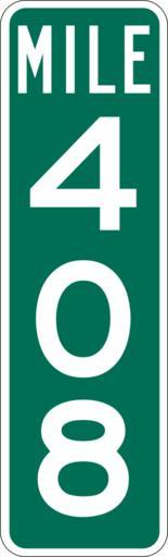 | Keywords: Mile Marker 408.svg PD MUTCD Rfc1394 457 1676 18 60 triple digit mile marker D10-3 Made using Viridian SVG Batcher this file was fabricated by a program 2009-03-05 Paul Robinson Rfc1394 Own work all rights released Public domain D10-3 - Distance Signs-3 Digit |