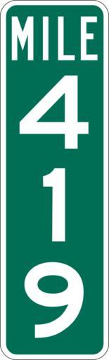 | Keywords: Mile Marker 419.svg PD MUTCD Rfc1394 457 1676 18 60 triple digit mile marker D10-3 Made using Viridian SVG Batcher this file was fabricated by a program 2009-03-05 Paul Robinson Rfc1394 Own work all rights released Public domain D10-3 - Distance Signs-3 Digit |