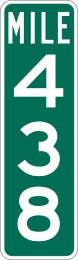| Keywords: Mile Marker 438.svg  PD MUTCD Rfc1394 457 1676 18 60 triple digit mile marker D10-3 Made using Viridian SVG Batcher this file was fabricated by a program 2009-03-05 Paul Robinson Rfc1394 Own work all rights released Public domain D10-3 - Distance Signs-3 Digit |