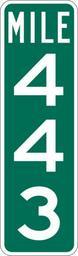| Keywords: Mile Marker 443.svg  PD MUTCD Rfc1394 457 1676 18 60 triple digit mile marker D10-3 Made using Viridian SVG Batcher this file was fabricated by a program 2009-03-05 Paul Robinson Rfc1394 Own work all rights released Public domain D10-3 - Distance Signs-3 Digit |