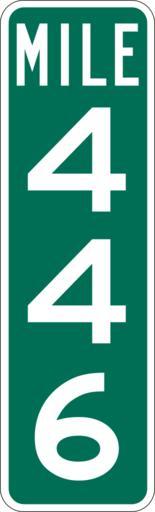 | Keywords: Mile Marker 446.svg  PD MUTCD Rfc1394 457 1676 18 60 triple digit mile marker D10-3 Made using Viridian SVG Batcher this file was fabricated by a program 2009-03-05 Paul Robinson Rfc1394 Own work all rights released Public domain D10-3 - Distance Signs-3 Digit |