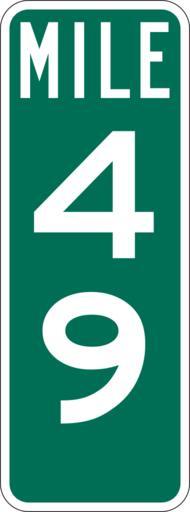Keywords: Mile Marker 49.svg PD MUTCD Rfc1394 457 1676 18 60 double digit mile marker D10-2 Made using Viridian SVG Batcher this file was fabricated by a program 2009-03-05 Paul Robinson Rfc1394 Own work all rights released Public domain D10-2 - Distance Signs-2 Digit |