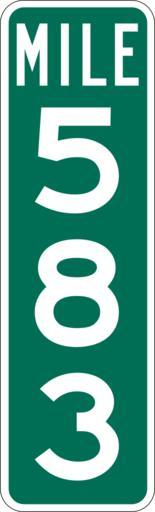 | Keywords: Mile Marker 583.svg PD MUTCD Rfc1394 457 1676 18 60 triple digit mile marker D10-3 Made using Viridian SVG Batcher this file was fabricated by a program 2009-03-05 Paul Robinson Rfc1394 Own work all rights released Public domain D10-3 - Distance Signs-3 Digit |