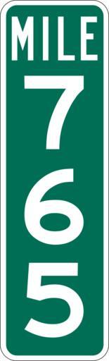 | Keywords: Mile Marker 765.svg PD MUTCD Rfc1394 457 1676 18 60 triple digit mile marker D10-3 Made using Viridian SVG Batcher this file was fabricated by a program 2009-03-05 Paul Robinson Rfc1394 Own work all rights released Public domain D10-3 - Distance Signs-3 Digit |