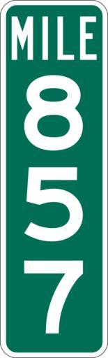 | Keywords: Mile Marker 857.svg PD MUTCD Rfc1394 457 1676 18 60 triple digit mile marker D10-3 Made using Viridian SVG Batcher this file was fabricated by a program 2009-03-05 Paul Robinson Rfc1394 Own work all rights released Public domain D10-3 - Distance Signs-3 Digit |