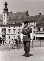 Keywords: Miličnik na Glavnem trgu v Mariboru 1957.jpg Miličnik na Glavnem trgu v Mariboru 103870 1957-05-13 author PD-Slovenia 1957 in Slovenia Historical black and white photographs of Maribor Main Square Maribor Male police officers on duty in Maribor Maribor Town Hall Cycling in Maribor |