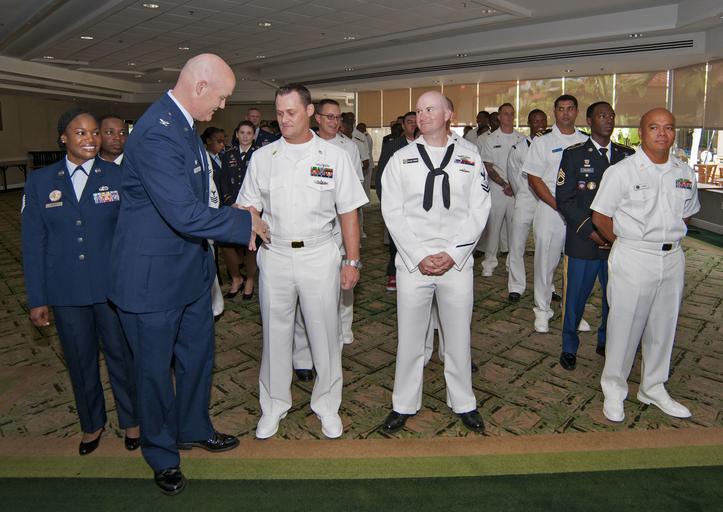 | Keywords: Military College Graduation JBPHH 141107-N-WF272-005.jpg en U S Air Force Col David Kirkendall deputy commander of Joint Base Pearl Harbor-Hickam congratulates service members during the 2014 JBPHH Military College Graduation recognition ceremony held at the Hickam Enlisted Club More than 60 service members their families friends and mentors attended the ceremony which recognized Airmen Sailors and Soldiers who have graduated from colleges and universities as class of 2014 U S Navy photo by Mass Communication Specialist 2nd Class Diana Quinlan/Released 2014-11-07 Petty Officer 2nd Class Diana Quinlan https //www dvidshub net/image/1650051 141107-N-WF272-005 2014-11-09 17 01 PEARL HARBOR HI US PD-USGov-Military-Navy 2014 in Pearl Harbor People at Joint Base Pearl Harbor-Hickam Images from DoD uploaded by Fæ |