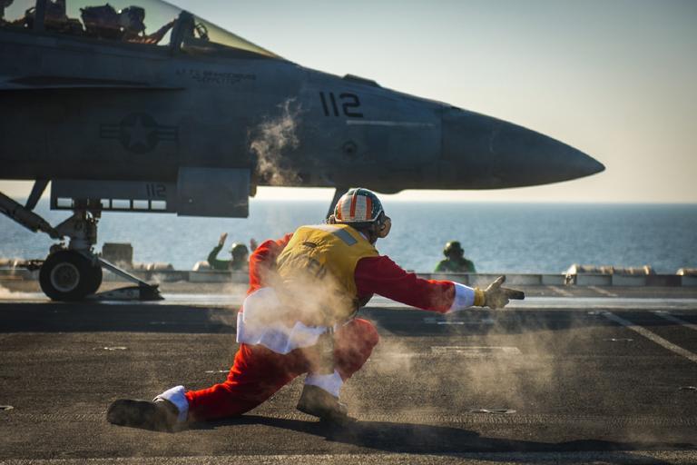 Keywords: military jet launch aircraft carrier signal f-18 usa naval fighter aviation sea plane catapult