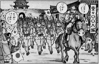 Keywords: Military manga 1938.jpg en Japanese humorous postcard depicting the entrance of the Japanese Army in a Chinese town 1938 Certain victory images of World War II in the Japanese media By David C Earhart Empire of Japan Custom license marker 2013 06 26 PD-Japan-oldphoto Uploaded with UploadWizard World War II posters from Japan World War II propaganda pamphlets from Japan Propaganda of Japan |