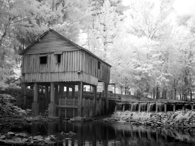 Keywords: mill rikards mill alabama usa america north america black and white sw infra red united states forest southern states river agriculture nature rest vacation carol m highsmith