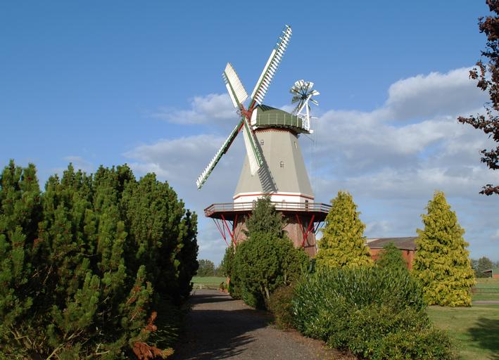 Keywords: mill windmill lower saxony blender wing dutch wind mill sky idyllic landscape flour mill bushes gallery dutchman