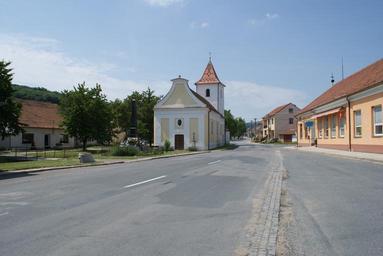 Keywords: Milovice 01.JPG en Milovice a village in Břeclav District Czech Republic part of the village commons with the church cs Milovice okres Břeclav část návsi s kostelem own Feťour 2011-06-04 Milovice Břeclav District Road II/421 Czech Republic