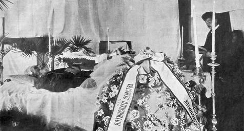 Keywords: Milyutin DA deathbed.jpg ru Фельдма шал г аф Д А илютин на сме тном од е Рядом покоится в г обу уме шая за несколько дней до своего мужа г афиня илютина похо оненная вместе с мужем 3 фев аля 1912 г в семейном склепе в оводевичьем монасты е в оскве 1912 Жу нал « ива» 07 1912 author other versions Custom license marker 2016 03 27 PD-RusEmpire Dmitry Milyutin Deathbed portraits Images from Niva magazine 1912 |
