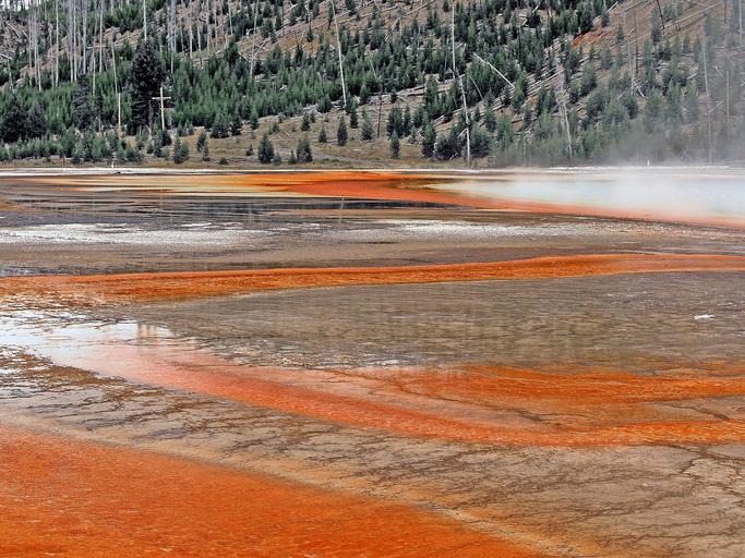 Keywords: minerals micro organism red water volcanic geyser yellowstone national park wyoming usa landscape nature scenic