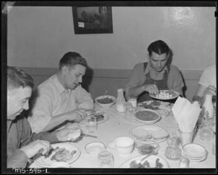 | Keywords: Miners eating at the boarding house. Independent Coal & Coke Company, Kenilworth Mine, Kenilworth, Carbon County, Utah. - NARA - 540512.tif Scope and content General notes 540512 Local identifier 245-MS-595L Department of the Interior Solid Fuels Administration For War 04/19/1943 - 06/30/1947 NARA-Author Lee Russell 1903-1986 Photographer 2489414 <br /> Still Picture Records Section Special Media Archives Services Division NWCS-S National Archives at College Park 8601 Adelphi Road College Park MD 20740-6001 1946-07-06 Record group Record Group 245 Records of the Solid Fuels Administration for War 1937 - 1948 Record group ARC 572 Photographs of the Medical Survey of the Bituminous Coal Industry compiled 1946 - 1947 Series ARC 540230 File unit File unit ARC Variant control numbers NAIL Control Number NWDNS-245-MS-595L yes Other versions <gallery> File Miners_eating_at_the_boarding_house _Independent_Coal_ _Coke_Company _Kenilworth_Mine _Kenilworth _Carbon_County _Utah _-_NARA_-_540512 tif tif File Miners_eating_at_the_boarding_house _Independent_Coal_ _Coke_Company _Kenilworth_Mine _Kenilworth _Carbon_County _Utah _-_NARA_-_540512 jpg jpg </gallery> NARA-cooperation PD-USGov Coal mining in the United States NARA TIF images with categorized JPGs |