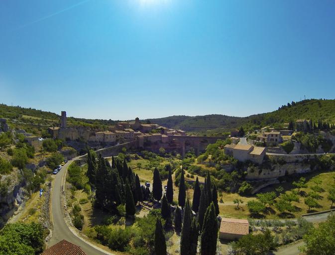 Keywords: minervois france village sky tree path panorama green blue field grass romance summer nature