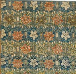 | Keywords: Ming flower brocade (cropped).jpg en RH3571 Textile Fragment 27 x 29 5 in 69 x 75 cm 14th/17th Century Published in Threads of Imagination Spink Catalog 1999 pl 16 A panel of silk brocade woven with a hexagonal lattice enclosing pink white and yellow flowers including peonies and lotus woven with a gilt outline against a sea-green ground Ming Dynasty 6 000 Ming brocades were sought after the world over their eye-pleasing patterns making their way to the viceroyalties of Mexico and Peru India Turkey western Europe and Japan where they influenced local weaving motifs and techniques RH3571 RH3570 http //www hali com/news/hollander-collection-chinese-central-asian-silk-textiles-online-exhibition-sale/ Unknown Chinese weaver Photo by gallery 14th to 17th century PD-old-100 Textiles of the Ming Dynasty Flowers in art Files uploaded by PDTillman 16th-century textiles Brocade Spink Auctions Hexagonal lattices Ming flower brocade jpg Taken with Hasselblad H5D-200c MS |