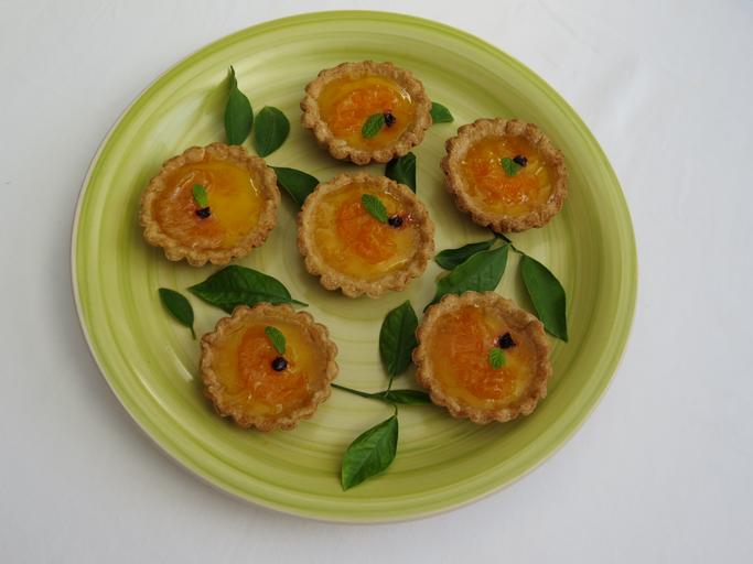 Keywords: minitartas custard tangerine pastry sweetened dough fruit syrup custard sweet snacks piecrust