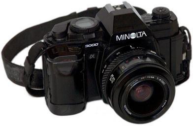 | Keywords: Minolta-9000-M4771.jpg  The camera body in this photograph is a Minolta α Alpha Maxxum Dynax 9000 single-lens reflex SLR The lens is a Minolta autofocus 35 “70 mm f/4 zoom lens Much of the rubber coating of the hand grip for the right hand is missing exposing the black surface beneath I took the photo Minolta 9000 2007-01-27 own assumed Fg2  |